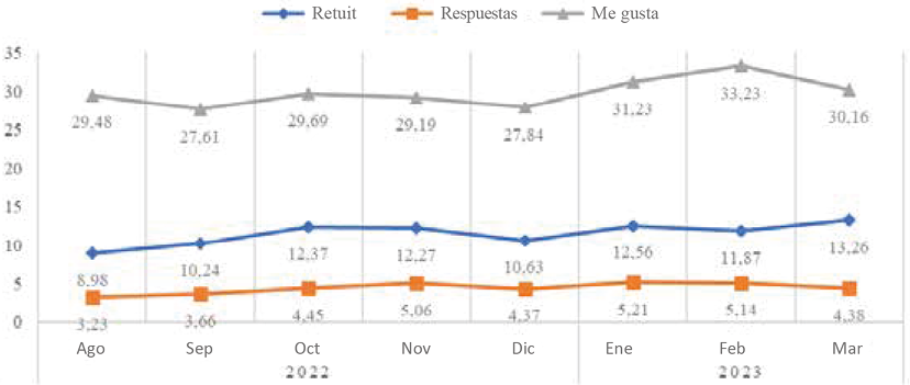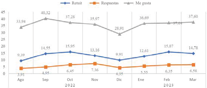 Figura 3. Promedio de métricas públicas de tuits en la conversación en torno a Francia Márquez durante el período estudiado
