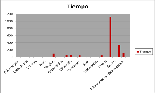 Para producir las categorías nombre y gustos se utilizaron 3 palabras en cada una, mientras que para respuestas evasivas, vagas, genéricas o anecdóticas se utilizaron un total de 9 palabras; por lo que vemos que para poder presentarse mediante esta última categoría requerimos más tiempo que en las otras.