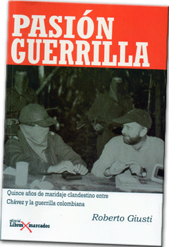 Tras quince años de investigación periodística, Roberto Giusti, redactor y cronista del diario El Universal, presenta una investigación gráfica y profunda sobre la situación en la frontera venezolana titulada Pasión guerrilla. Quince años de maridaje clandestino entre Chávez y la guerrilla colombiana. Publicada por la Editorial Libros Marcados (Primera edición, Noviembre de 2009), este extenso reportaje es la historia de cómo sobreviven cientos de personas en la frontera donde persiste un permanente estado de alerta ante el dominio, cada vez mayor, de grupos insurgentes sobre lo que ha sido llamado “un tercer estado”, cuyo control se disputan los paramilitares, la guerrilla colombiana, la venezolana y el hampa común. El libro está narrado en primera persona (a veces es la voz del autor la que se encarga de hilvanar las historias, otras los entrevistados utilizan el “yo” para contar experiencias personales) pues posee un claro estilo testimonial dado por las vivencias de quienes habitan en los campamentos guerrilleros que Roberto Giusti tuvo oportunidad de visitar en varias oportunidades, para presenciar de primera mano todas las actividades que en ellos toman lugar, desde la supervivencia en el día a día hasta los entrenamientos militares. El relato viene acompañado de elocuentes gráficas que si bien son testimonio de los actos irregulares que allí acontecen (como el reclutamiento de menores de edad, por ejemplo), también son muestras fehacientes del lado humano de los combatientes, quienes dejan escapar sentimientos casi siempre reprimidos como el amor ante el acucioso lente del autor. El libro se divide en once capítulos narrados en orden casi cronológico a excepción del primero de ellos titulado Una Venezuela llamada Colombia donde el autor despliega una suerte de síntesis de lo que ha sido la relación entre los colombianos y los venezolanos, desde los años sesenta hasta nuestros días, y describe cómo la percepción de quienes eran considerados “embaucadores de oficio, carteristas y culebreros” se transformó radicalmente raíz de que en Venezuela sobreviniera una profunda crisis económica que transformó a los venezolanos “mayameros, patanes y nuevos ricos” en ciudadanos con profundas carencias y desigualdades. De igual forma, en este capítulo Giusti explica cómo ha sido esa relación no menos tormentosa entre Hugo Chávez y Álvaro Uribe, a quienes los ha reunido “el gusto por el poder, la geografía y la convivencia mutua (…) aunque los chavistas acusen a Uribe de cipayo al servicio del imperio norteamericano y los uribistas a Chávez de dictador manejado de la mano de Fidel Castro”. (Cf. Pág. 12-17). En los capítulos posteriores se destaca la labor periodística del autor como entrevistador de diversas figuras vinculadas de una u otra manera con la guerrilla, entre ellas, el comandante Alexis, quien finalmente accedió - después de muchos años- a concertar un encuentro en un rancho perdido de las montañas del Arauca. “Fueron las mismas víctimas – los ganaderos- las que propiciaron mi cita con Alexis, el jefe militar del Domingo Laín, el más virulento de los frentes guerrilleros del Ejército de Liberación Nacional, con jurisdicción en tres departamentos colombianos y para entonces, ya firmemente establecido a este lado de la frontera. El Domingo Laín era el frente más aborrecido por las autoridades militares venezolanas luego de la masacre del puesto naval de Cararabo” (Pág. 24). También se relatan otras entrevistas a líderes de los movimientos subversivos como el comandante Zamora, jefe del Frente 33 y responsable de la penetración faraca en territorio venezolano y Raúl Reyes, cerebro financiero de las FARC y pieza clave para la consolidación de San Vicente del Caguán como zona de distensión, quien reconoció haber tenido encuentros con el aún candidato Hugo Chávez con “carácter reservado”. De la misma manera, el trabajo periodístico de Roberto Giusti se esmera en destacar las vivencias de quienes se encuentran del otro lado el conflicto: las víctimas. Con profundidad de detalles, el autor introduce la historia de una familia tachirense azotada por la desgracia producto del enfrentamiento directo con los grupos subversivos: Los Marciales. En este capítulo se detallan los mecanismos del secuestro y la extorsión que sufren los empresarios y ganaderos del estado Táchira, como consecuencia de la impunidad con la que operan los irregulares en la zona, destacando la magnitud de una red que ha sido perfeccionada para cometer delitos cada vez más sofisticados. “Ellos saben quiénes son los secuestrables y quiénes los vacunables. Tienen inteligencia. Pendejos no secuestran” (Pág. 46). Asimismo se ilustra la denominada “fiesta de la vacuna” en la que el autor participó como testigo de excepción y donde, paradójicamente, convienen en un banquete víctimas y victimarios, celebrando un encuentro festivo cuya finalidad no es otra sino la de ritualizar un acto vandálico que termina con la extorsión de los ganaderos por parte de sus invitados. Finalmente, el capítulo que cierra la historia Del canje humanitario a la guerra fría internacional, constituye un balance obligatorio de los últimos años, no sólo en la frontera colombo venezolana sino a partir del enfrentamiento directo entre los presidentes de ambas repúblicas, situación que llega a convertirse en una suerte de reality show donde nadie gana y todos pierden. Donde “más allá de la internacionalización el conflicto, los problemas de fondo subsisten en los dos países condenados a la vecindad eterna y regidos por dos hombres a quienes separan todas las diferencias imaginables(…) De allí derivan todas las consecuencias de un conflicto que permanecerá latente, con sus bajas y sus altas, mientras persistan las causas que lo provocan. No resulta extraño, entonces, que tanto guerrilla como paramilitares sean fenómenos promo