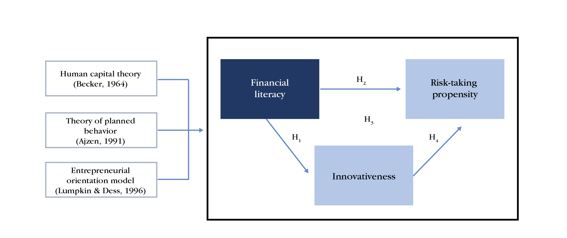 H1: Financial literacy positively influences innovativeness.