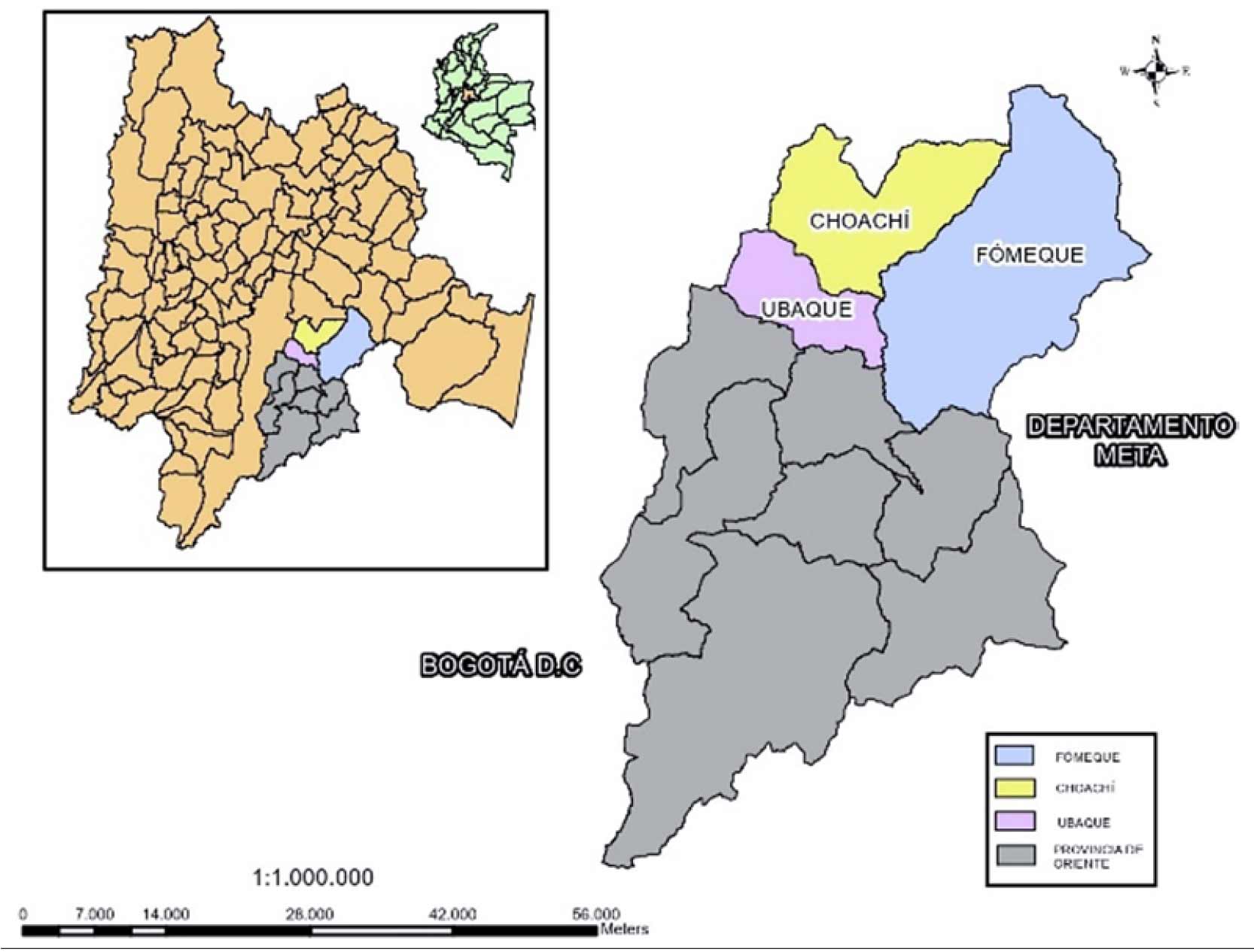 Figura 1. Ubicación de Fómeque, Choachí y Ubaque en la Provincia de Oriente