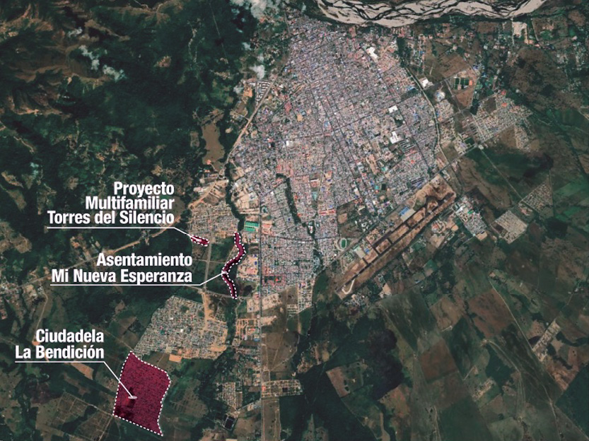 Los asentamientos seleccionados como casos de estudios para esta investigación fueron: Ciudadela La Bendición, Asentamiento Mi Nueva Esperanza y el proyecto de vivienda multifamiliar abandonado Torres del Silencio, los cuales están ubicados en áreas periurbanas de Yopal (figura 1), entendidas como áreas de transición y complejidad dinámica que se encuentran en la interfaz entre lo urbano y lo rural (Simon, 2008).