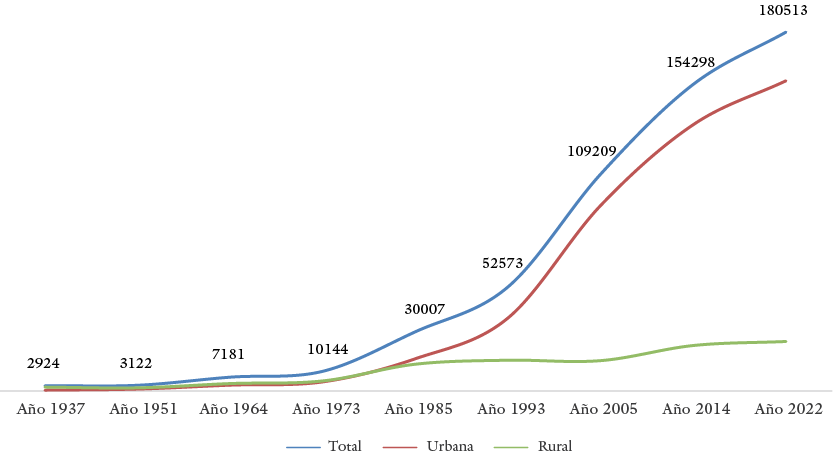 Figura 6. Crecimiento de la población de Yopal entre 1937 y 2022