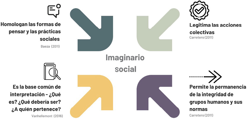 En la definición de Vanhellemont de 2016, inspirada en la obra de Cornelius Castoriadis (1975), los imaginarios sociales se entienden como marcos fundamentales de interpretación para ver el mundo y la humanidad.
