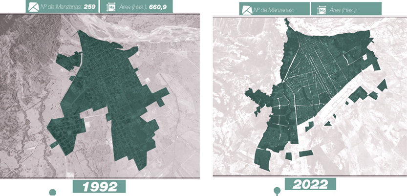Figura 5. Crecimiento del área urbana de Yopal en el período 1937-2022 (distintas escalas)